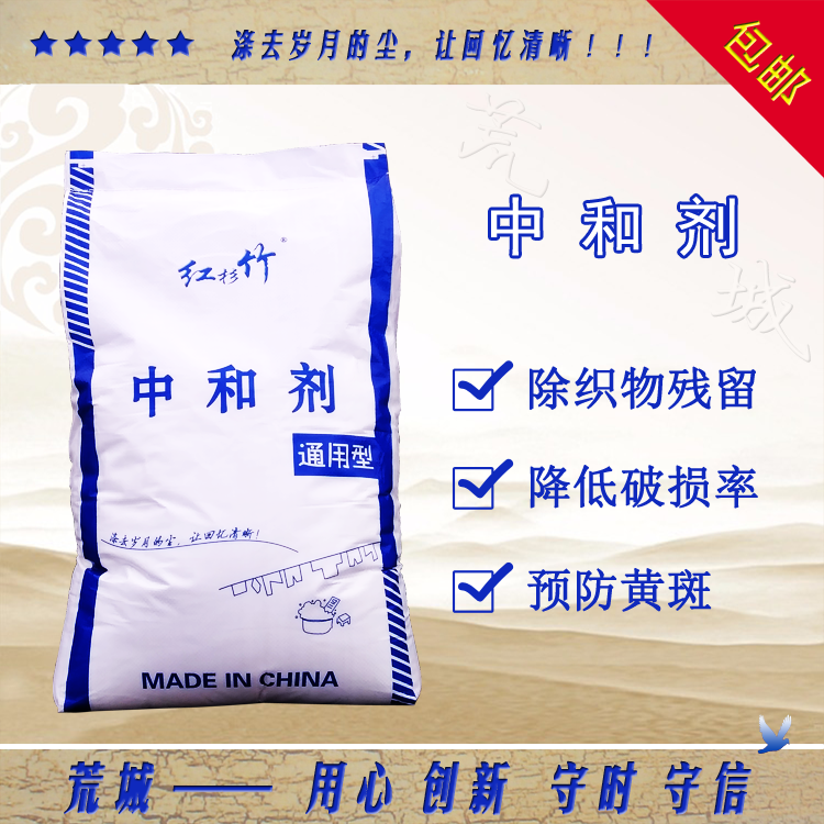 中和劑還原性強、穩(wěn)定性好、儲存方便、對白色織物安全無害。中和水中的游離堿和去除余氯,可預防織物發(fā)灰發(fā)黃。有助于去除織物中的鐵銹漬。堿類洗料進行織物水洗后,會進行多次過水,但受諸多因素影響,不能保證洗后沒有堿性成份殘留,殘留的堿性成份,可以使織物變灰變黃,也會使織物手感發(fā)硬。所以用中和劑與殘存堿性成分發(fā)生中和反應,中和織物水洗后殘留的堿以及水中可能存在的堿性物質,調節(jié)PH值,使織物的PH值接近人體的體表PH值范圍(5.8~6.5)。